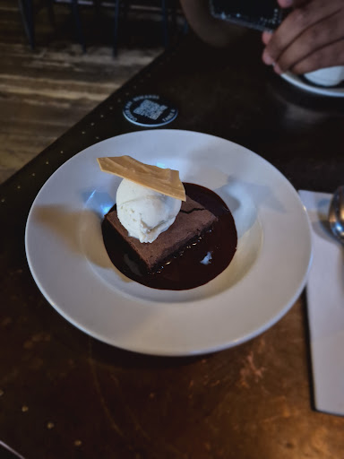 Dessert brownie and posset were excellent.