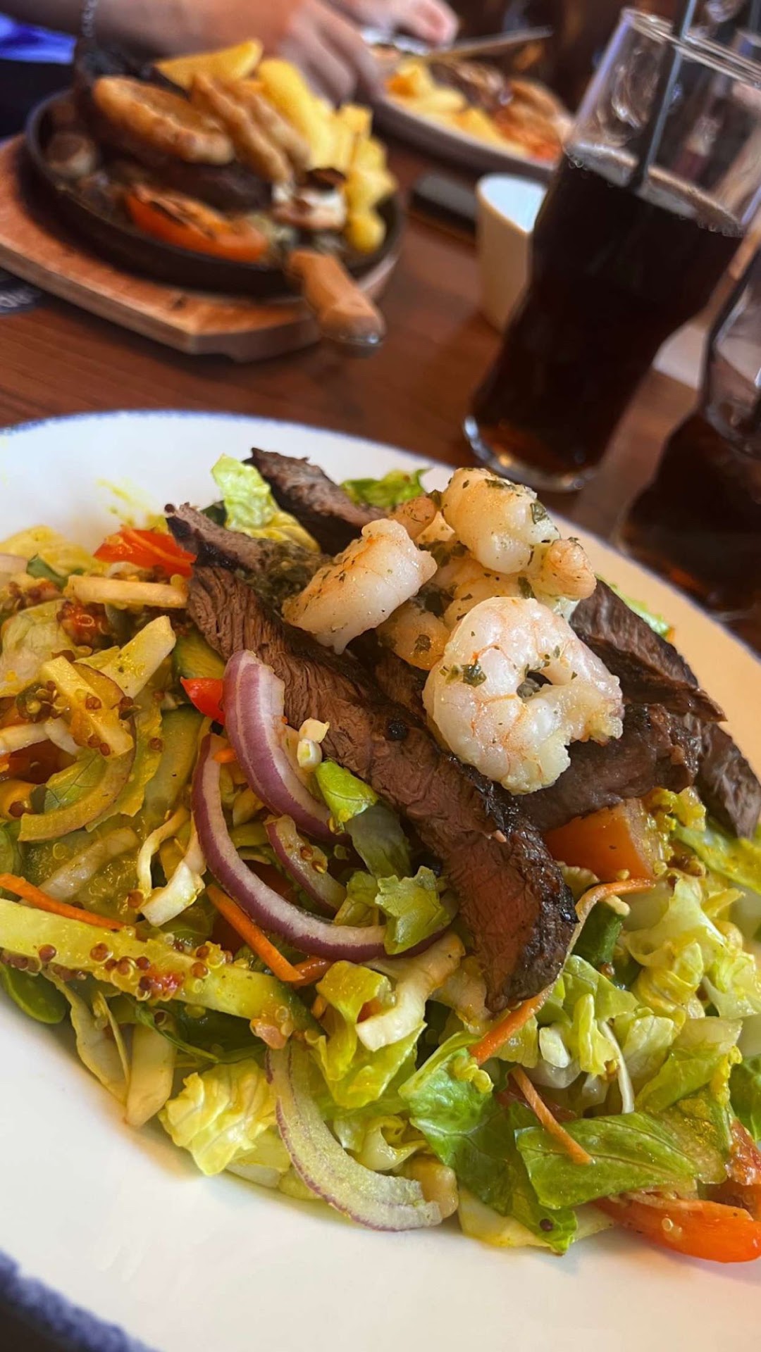 Live around the corner for over 3 years and thought today we would try the food since itâs local. The price of the food is reasonable, BUT⌠everything was wrong after that. Ordered the surf and turf large for my dad with sweet potato fries with a peppercorn sauce and gammon for myself with sweet potato fries. As soon as I got back to the table my dad said he wanted normal chips. (My fault for miss hearing him) I went back to the bar straight away and was told that nothing could be changed and that I couldnât have a refund for the sweet potato fries. I asked if the normal chips could be brought out anyway since they were included in the price of the surf and turf and we would have the extra sweet potato fries anyway. Response was âno problemâ⌠I thought ok then despite the ÂŁ26. Something for the 2 mealsâŚ. 12 for surf and turf, 6 for the sweet potato fries and 6.76 for gammon. Couldnât make out why it should of been ÂŁ1 or something like that cheaper.. so just left it. The meals came and there was 1 surf and turf and one sirloin rather than the gammon. No peppercorn sauce and 1 portion of sweet potato fries instead of the 2 we ordered. I returned to the bar advising them that I believe that I might have been given someone elseâs orderâŚ. They seemed to be adamant that they were right, but since I asked if the egg and pineapple came with the gammon upon ordering it and the person who I placed the order with seemed to then remember, the issue was then sorted by a lovely girl very quickly and took both of our plates, so we could eat at the same time. The food came out after a short wait, the gammon and egg was nice but the rest cold, and my dads steak was then over cooked and had no flavour. Was too hungry at this point to say anything. The second lot of sweet potato fries never came and neither did the peppercorn sauce. My dad said the steak needed ketchup to give it flavour which is not goodđ