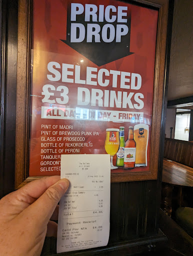 Update: I have revisited after a couple of months (which included wallet busting increases for hospitality employers such as minimum wage increasing and increases on NI plus costs of products reaching all time price highs) and what do I find when i arrive here? The price of a pint has come down by 35p on my aforementioned review.