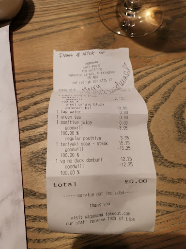 Read moreIf I could give 0 stars I would! Worst thing ever! They’ve mixed up our orders so the waiter called Maria changed it but that meant my friend was finished with her food before I even got mine. Maria was professional and welcoming that’s the only positive about this visit. Then we complained that my friends dish was unusually spicy and inedible even though she always orders it and it’s always mild. So new staff coming over called Diana the trainee manager (cherry on top of the cake)has been told my friend didn’t like her dish but she just left and did nothing. Obviously paid the bill even though I should’ve refused to pay for my friends dish. Then one of the Maria came over to ask how things were I told her my friend did not like her dish. She came back and asked if we have already paid for that I said yes as I have. She wanted to take my friends dish off the bill but instead she said she’ll get my email address so she can pass it to head office and they could send me a voucher of some sort. It’s been days since and I never received compensation. So I’m assuming that email will never arrive that’s just how they make you shut up. Well I left unhappy and they never took that item off the bill or refunded nor did they email about any compensation so I think that whole thing was unprofessional and unacceptable. We ended up leaving hungry as none of our dishes satisfied us. My friend literally couldn’t eat her dish as it was way too spicy and they wouldn’t offer to replace it with something else. I wasn’t impressed by it whatsoever. Rubbish service and food. Customer service and problem solving skills non existent. It was all very unprofessional. It’s a very poor experience which is a shame as I visited wagamama several times before and I always left happy and tipped generously and complimented the chefs. Never again! Safe to say I will not be visiting this chain ever again. Save your time and money don’t bother with...