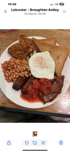 Read moreDollys Cafe in Broughton Astley 25March’25 Tuesday 10am & Saturday 11April 10.30am I had a super full English Breakfast for £8 with as much tea or coffee I could drink! I did not have to wait long to be served. I really enjoyed the whole meal. I will attend again often. Open 9.00am Tues Thur Friday. 10.00 am Wed & Sat. Dolly will supply you with...