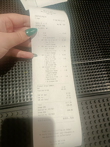 My husband and I took our granddaughter for a half-term treat (22.02.2024) I informed the server that I was going to use the voucher code and was told that we would have to pay for her dessert if she had one! The children's menu at £6.49 says dessert 'free' but because we were using the voucher we had to pay!! I ordered off the lunch menu and my husband the main menu. Our food arrived promptly minus loaded onion rings, I reminded the server who then got us 'just' onion rings!! Not wanting to fuss I let it go. We had dessert, my granddaughter had the 'make you own ice-cream' which she loves. We were coming towards the end of the meal when suddenly a different server was at our table asking to clear! I said no, as our granddaughter was still eating.With this she said 'I'm done Nanny'. When we got the bill I gave the code so the server got us a new bill. It was hard to read without glasses and the lights are low but we checked the onion rings were what we'd received and paid. I then realised that my lunch offer wasn't on the billl. I found the server who said because I used the code my lunch deal was cancelled...'its in the 'terms and conditions ' I explained we weren't told this and he just repeated himself. I then spoke with the manager who again said its in the terms and conditions!