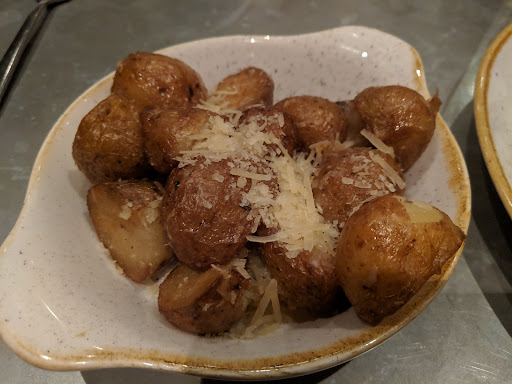 Nice Decor and service but the food although nicely cooked was Bland in my view. I had the a=scallops to start with that should have been nice, they were well cooked in texture but the potatoe and smoked bacon brought no flavour. I was a bit surprised there was no Saltyness form the bacon which was quite dry. I have cooked with the juices from Chorizo which gives it great kick but It was just bland. I went for the fillet steak for the main which was very well cooked and the I think Garlic butter was very good - top rating for that. The Pepper Sauce was however thick and gloppy and not that peppery and big disappointment. I had the New potatoes with parmesan which was as described and again was expecting some melted butter / parmesan but I could have prepper at home in 1 min extra. The desert was nice which was the sticky toffee pudding the ice cream was good. But the desert range available was disappointing as I fancied something else. The house red was good as well. Would I go back - actually yes but I would go for chips and have the fillet steak as is - as it was very good and at a pretty good price. I would just go for a...