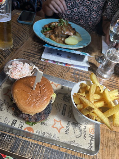 Went for my friends birthday, it's a gorgeous place and as someone who loves steak, that is obviously what I ordered. The chips were nice (I don't like chips so that's a big compliment) however my steak wasn't very well seasoned, it was supposed to be with garlic butter but the taste was barely there I had to scrape it all into one area to get one or two tastey mouthfuls. The birthday friend had some chicken strips that came with sauce and they looked so good both me and my girlfriend were jealous that we didn't order that. However, upon our friend letting us try them we were thankful, they looked just like real chicken strips, but once you but into them they felt like cheap processed chicken rather than fillets that had been fried, the coating that looked well seasoned and tastey tasted like nothing. My other friends being vegetarian and pescatarian were more limited on what they could have but seemed to enjoy their food. Lastly I couldn't seem to find an accessible toilet, as someone who needs one I had to just hold it in making my meal uncomfortable, I felt too embarrassed to ask the staff if they had one which is on me so I won't hold that against the place. The staff themselves were really lovely and patient with us while everyone picked their meals. Overall, great looking place and a great atmosphere but I wouldn't ever eat here again...
