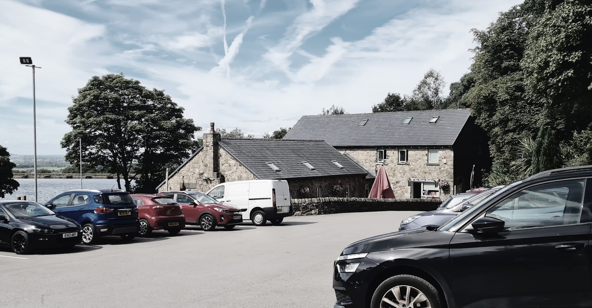 The premises is located next to a small reservoir with outside seating available, which promises to provide a pleasant view in clement weather. parking is free however there is a single track approach road with large potholes so caution is required to avoid damage to a car, this will be a particular issue in the dark.