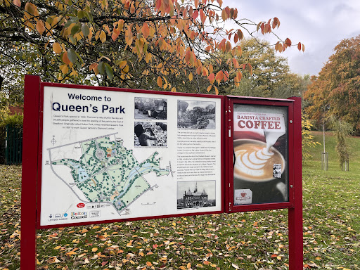 Read moreReally nice Cafe within Queens Park selling a wide range of snacks, cakes, drinks and ice cream etc. Clean toilets Inc disabled and baby changing room. Inside and and outside seating areas, dog friendly they are allowed inside I believe providing they are on a lead and well behaved. Small kids soft play area inside (unfortunately for us of a older generation who's kids have grown up some and now look for peace and quiet)🤣 Member of staff even offered some sausage for our two dogs, water bowl outside as well for them. We'll...