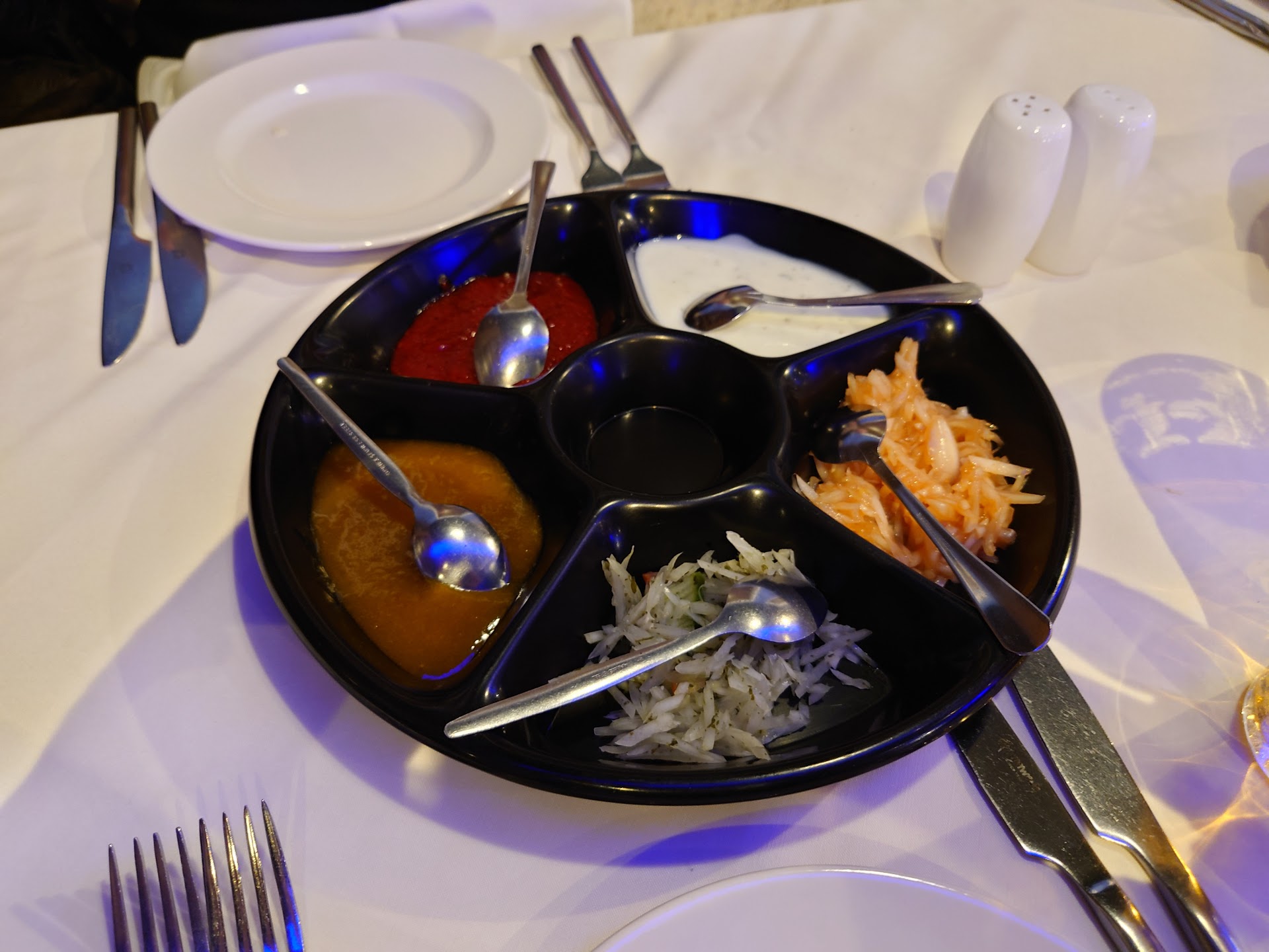 Same goes for the chutney tray - small portions of about 5 different things but a little overcomplicated. Only suitable for about 3 poppadoms before you run out.