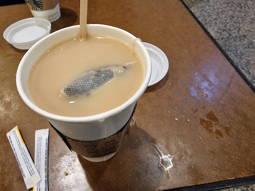 Arrived here at 19:20 to sit down and have a drink of coffee before our film started at 20:45. Being as the closing time is 20:30 we thought this was perfect. To our disappointment we were told we could only have our drinks in takeaway cups. I showed the server my blue light card expecting to get my 10% discount. Only to be charged more than the actual price of the 2 drinks. When ordering on the app the drink price for both is £8.75, I was charged £8.80 with my blue light discount. Now I'm not the best at math but surely I should have been charged £7.87 for them. I also don't appreciate the dragging of outside tables into the store an hour before closing. We were not able to have a decent conversation because of the noise. Also the poor lady that was cleaning up was left to lump all of the tables in her own whilst the 2 male members of the team faffed behind the counter. To top it off whilst we were trying to drink our drinks the lady was sweeping up 45 minutes before closing, surely that should be done after closing due to dust particles getting into customers drinks. Needless to say we left to go and sit in our car as we could not put up with the service customers were...
