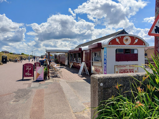 What a nice idea to have a café in a converted railway carriage! Came here mainly out of curiosity, and enjoyed a really satisfying lunch! Located between the promenade gardens and the beach, close to Pleasure Island and the pier, it's actually a carriage connected internally to a brick "station" building behind it. There's a takeaway and ice-cream kiosk, and a shop selling beach tackle, toys and gifts next door. The café itself is clean and comfy, with old photos of local scenes on the walls. There are toilet facilities, and outside seating both in front of the carriage and on a terrace at the back. The lady who took my order was welcoming, helpful and friendly, and I was served quickly. The menu was fairly basic - breakfasts, sandwiches, jacket potatoes and simple cooked lunches, plus a children's menu. You can get speciality teas, coffee and soft drinks here. Had the scampi with chips and mushy peas. It was well cooked and piping hot, and the chips were really good! Nice refreshing mug of tea (they don't do tea in pots). Altogether the meal cost just £8.95 (cash only). I considered that excellent value for money! Would...