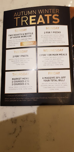 Read moreWent this evening for my birthday. Apart from the fact that the outside restaurant area was filled with a screaming, drunken, baying mob celebrating someone else's birthday, we decided to stay because it allows dogs in the outside area. Mistake number 1. We ordered a cocktail for me and a half pint for my OH - and still didn't leave. Mistake number 2. We had starters - mine was lovely but my OH said afterwards that his crabcakes were tasteless - but he didn't complain (he's not the type!). Mistake nunber 3. When my main course of duck arrived, ordered to be pink, it was so overdone my jaws were cracking trying to chew it. They replaced it - and we stayed. Number 4. The replacement duck was so raw I couldn't saw it up with my cutlery. You guessed - number 5; we didn't leave. Asked to see the manager and the waiter asked me if anything was wrong; I said "yes" and asked to see the manager again - waiter looked at me as though I'd sprouted a second head and walked off. Manager came and I showed him the 'duck-no-sawing' trick - he replaced the duck with my request for linguini; I figured, Italian restaurant; surely won't screw-up lingini? A massive portion of spaghetti arrived, complete with poached egg on top, and it was as though the 'chef' had forgotten how to make a cream sauce and used glue instead, along with about three tiny cubes of pancetta. By this time I was too uncomfortable at complaining to complain. Number 6. Sent back the whole plate with the answer to the question, 'is it ok' being, 'I'm full.' So, for two starters, one good one tasteless, a cocktail and a half pint, one main course that, according to OH, was also tasteless (mine was not charged for), a bowl of chips, a bit of veg, and a bottle of water - £63. If you have money to burn and no taste whatsover - this is the place for you. Left my birthday meal feeling utterly dispirited and very angry. Have given it one star for the calamari and, being terribly English, for the bowl of water they...