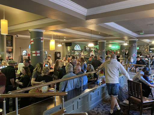 Read moreTried this pub for lunch while on a shopping trip, and it certainly didn't disappoint! It's in a quiet and leafy corner of Lytham, just off the road leading to Lytham Hall, but only 5 minutes walk away from the busy main shopping street. Plenty of parking close by. Formerly the old railway station, it looks very Victorian on the outside, but is modernised and spacious inside, with a choice of seating and TV screens showing sport. There's a games room at one end, with a pool table and darts, and also some nice outside tables under canopies. I chose to eat inside, in a cosy corner next to the window. The staff who served me were very polite, attentive and friendly. Large menu that included brunches, grills, kebabs, sandwiches and traditional main courses. There was a separate children's menu, smaller portions for adults, vegan and gluten-free options. Ordered the posh fish pie, with carrots and broccoli. Delicious chunks of cod and salmon, and jumbo prawns in a tasty sauce, cooked to perfection! Vegetables were just right, neither too crispy nor mushy. Great choice of desserts and sundaes for afters. The lemon meringue pie with strawberries was beautifully presented and deliciously tangy. Good wine and latte too. Altogether a very satisfying lunch, and not too expensive. Would...