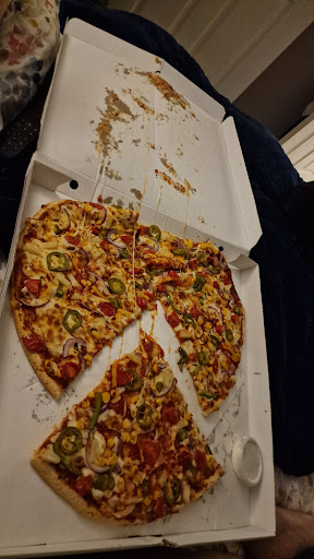 Read moreMy wife and I have this sort of tradition where as Monday night is our pizza night, we order our usual pizza, large 18 inches of hot piping joy, we settle down and watch our favourite 80's throw back movie. The drivers are awesome and friendly and we have always treated them with respect. This has been the way for months now, our own slice of Monday heaven, so, I was a little let down when as we settled down for our pizza getting ready to watch Arnie take on the space hunter Predator, with his cheesy one liners and a handful of muscle bound bad asses when we opened our pizza box with what can only be described as car crash in a box, that cheesy was plastered on the lid and the pizza looked like it had hit the side of the inside of the box at 30mph. Needless to say my wife and I were a little miffed with this.. don't get me wrong the pizza was still as tasty as ever and was devoured post hast. As the team has never let us down in that department. Just a little...