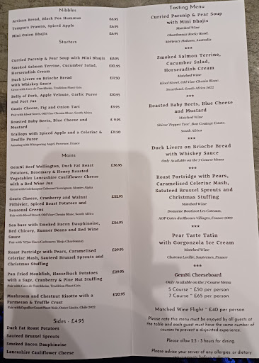 Top marks in all categories, the food was great, we had the 5 course taster menu at £50 and it was delicious. Being a taster menu you only got small portions so we wasn't overly full at the end of 5 courses. Unusual combinations ie. Pear and Gorgonzola ice cream and curried parsnip and pears but it all went together really well. You can have a 7 course taster menu which includes another middle course and a cheese board for £65. Matched wines are an additional £40pp. Nb. You can only have these if ALL the guests at the table are having the same. I don't eat meat so they happily swapped the partridge course for the goat's cheese pithivier from the main menu. It's not cheap, cost us (£70pp, incl. Drinks) but it's worth it. Lovely modern decor all whites, grey and black. Sorry I've not more photos inside but the place was busy. Make sure you book, especially if it's towards the weekend. I'll...