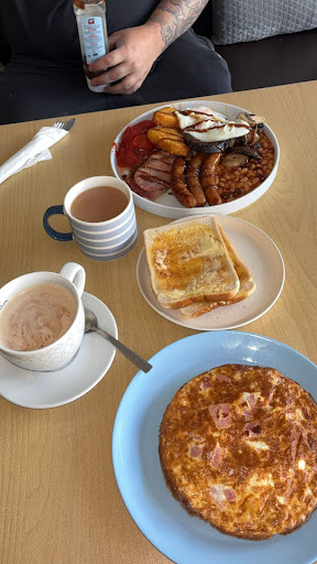 Simple, good stuff. We've only been twice, both have been for breakfast, and both have been excellent. They have a range of breakfasts, from small to belly buster. Everything is cooked fresh, the ingredients are top notch butchers items. We only get the small one, but that's 1 sausage, 1 bacon, beans, egg, hash brown, and a slice of toast. You also get a mug of tea or coffee (good quality filter one, i.e. nothing fancy, but definitely not instant). All of that for us is a belly buster. The best part is it's £3.50 - for all of it. We've been in places where the coffee and toast are more than that, never mind the breakfast. Then there's the staff. All make you feel as though you've been a regular for years. Friendly, helpful and willing to do anything special, and all with a genuine smile and heartfelt gratitude. The decor is clean and new, and even the loo is huge and tiled from floor to ceiling. My only complaint is we've lived in the Rossendale valley for 2 years and only found it...