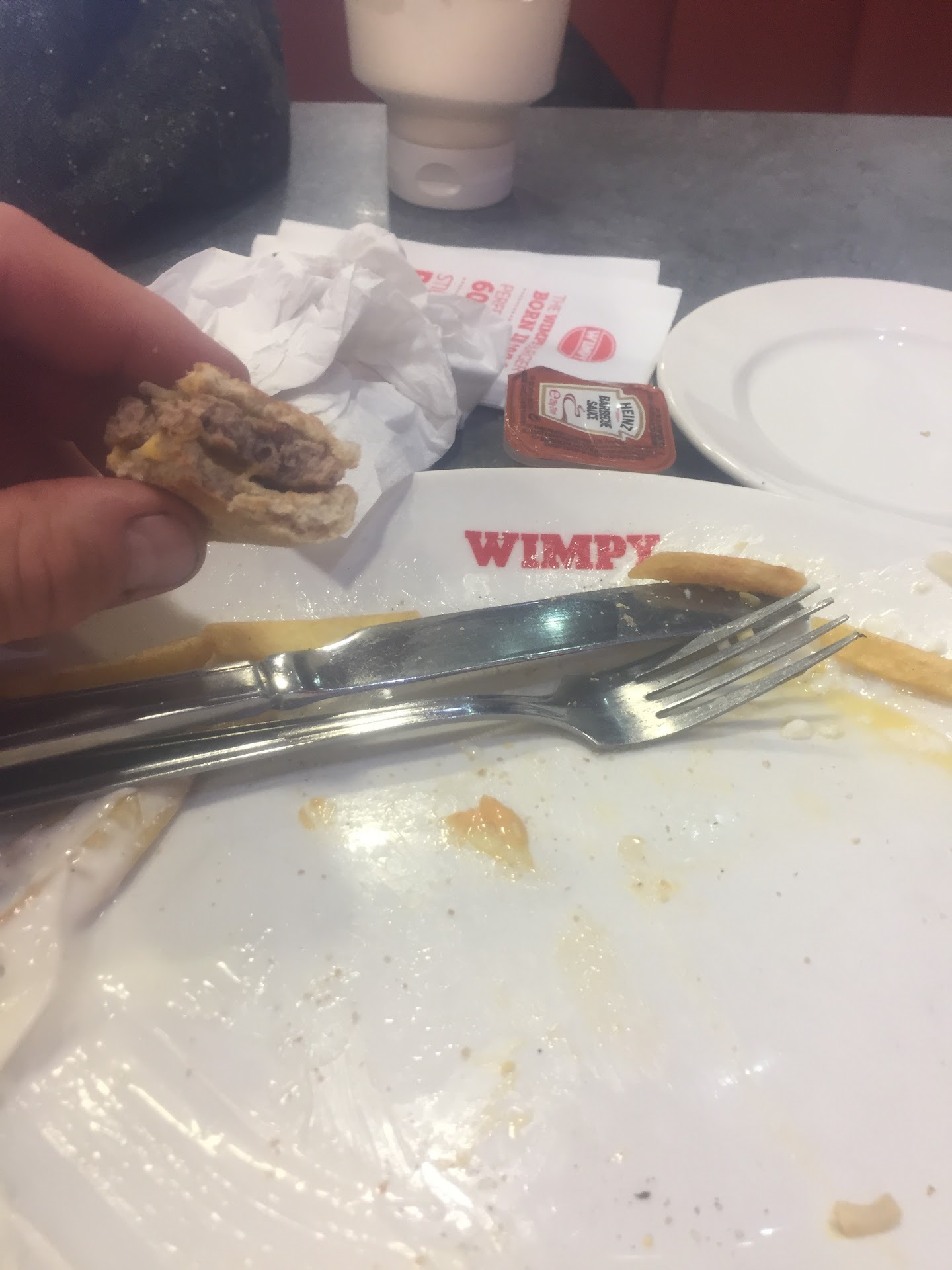 Read more£9.60 for a 'bacon&Cheese' quarter pounder, fries and large Pepsi, not good value for money in my opinion (GBK has much better quality burger and fries for the same price) If you are South African and wondering if it delivers the same consistency of food from Wimpy in SA, then just forget it, doesn't come close. (Dont get me wrong, the food was fresh and the restaurant spotless with well timed service and friendly staff, but it was a rip off with cheap burger ingredients) (they are charging premium price for a lower than premium burger). The fries are good though, but you can't exactly muckup...