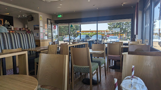 My one gripe about this place is the lack of nice seating. Inside is standard Costa layout, but there are doors at the back which lead to a very overgrown and brambly area. If this was cut back, there could be a lovely outside space which, although near the dual carriageway, would also look out on to the fields and could be a welcome break for long haul drivers. It would also rival the Starbucks over the road which doesn't appear to have any outdoor seating. Regardless, there are a couple of small tables and chairs out the front overlooking the car park, and if you really can't find the sandwich you are after, there is a convieniently placed Subway right next door, as well as the petrol station so you can fill up completely before you go...