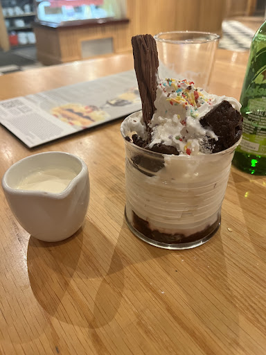 Pudding Rocky road Sunday!! NO marshmallows, NO chocolate ice cream served in what looks like a small tumbler and for some reason rainbow sprinkles were all over it!! Nothing at all like advertised! Expressed to staff that it is not what we ordered and he walked away saying it is the same as the menu just in a different glass!