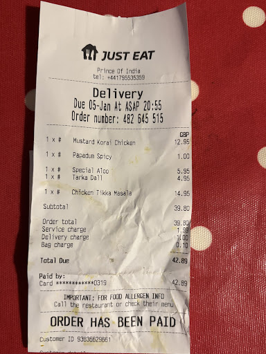 I did order on Sunday night, so perhaps that was the reason, but I won’t be using Prince of India ever again. I’ll stick to their rivals ! Not cheap either and for this kind of money, you expect a good quality meal.