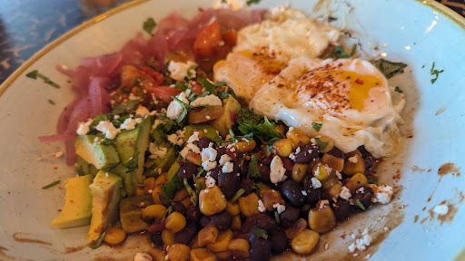 On one occasion, the QR codes weren't working and we had to order at the bar - this got messed up, as we ordered 2 veggie breakfasts, but only 1 arrived, and we then had to wait for the second, but the first wasn't kept warm either, so we ate separately. There wasn't even really an apology either. On another occasion, an item wasn't available with our meal, but we weren't told until the food arrived and we queried where it was - we explained that if we'd known, we'd have ordered something different. The manager dealt with us on this occasion and was apologetic, and gave us cake to take away as an apology. Today, we ordered 2 Miami brunches, but one with fried eggs instead of poached. Only 1 dish arrived and we were told they'd done the fried eggs as poached so it was delayed (so again, we are separately), but both dishes were also missing the sweetcorn fritters. Normally we'd have mentioned this when they came to check on how the meal is, but no-one came, even though the restaurant was actually very quiet! We went to the bar at the end of the meal, and got an apology, and the fritters were then sent out - they're the best bit, so we were glad they were available, just a shame to not eat them...