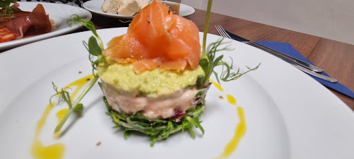 The food was delicious I had the charcuterie with gherkin butter to start and the hubby to be had the prawn, salmon and avocado stack. Both very well presented and very tasty.. I wasn't expecting to like the butter but it worked really well.