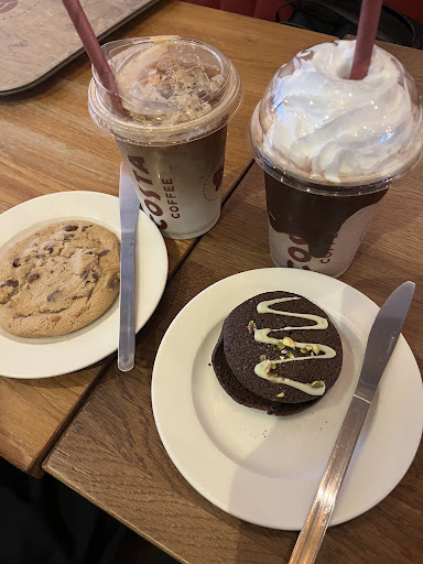 I frequently go to this Costa as its in my local town and I feel so disappointed to have to write a review like this. The staff have always been so nice there, but recently new staff are quite honestly awful. I haven't seen any of the other regular staff there for a while, and the place has gone down hill. Rude, bored looking staff. Unwilling to help, actually ignore the fact you're stood there. 4 female staff stood there chatting and only one serving. And when you do get served, the attitude of one young girl in particular is terrible, nothing short of a rude teenager. You may not like your job, and if you don't find another. But please stop being rude to the people who essentially pay your wages. Also, the cost has sky rocketed. £10.50 for 2 large hot chocolates!!!!!! Ridiculous. Won't be going there much anymore,...