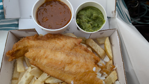 Read moreOrdered a large haddock, large chips, curry and peas. Fish quality was incredible! Sooo fresh and juicy. But where’s the batter? It’s practically nonexistent, so nonexistent that I can’t even rate the batter :( As soon as I opened the box I was extremely disappointed as I could see the fish fibers/texture throughout the piece. That means it was so thinly battered it couldn’t even be distinguished from the fish it self. Usually you’d be able to separate the batter from the fish, and one satisfying aspect of the fish and chips experience is the option to peel a piece of the batter off and give it a taste. Look at the photos of the other reviews and you’ll see what I mean. I wish I’d had a look at the photos before I went to this chippy :( The chips were ok - cut a bit too short. The fruity curry was good, but too sweet for my taste. Peas were nice, but too solid, like a paste - I like mine...