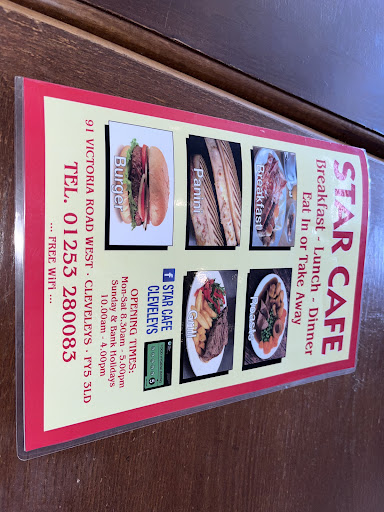 I have just found this cafe as I dont often walk on this side of Victoria road. Star Cafe is between the Post Office and Nat West Bank. Having just noticed it last week a friend and I decided to give it a try and we are so glad we did. This is without doubt the best value breakfast in Cleveleys and the rest of the menu looks really good too, so whatever time of day there is good food available here. Whilst so many cafes in Cleveleys are small and cluttered this has plenty of space between the tables and down the centre of the room so anyone with prams or waking aids have enough space without blocking access to tables. Bal is a fantastic host and has the most welcoming smile which is an added bonus to the lovely food. Its just across the tram tracks going away from the prom and is well worth crossing the road for. This has now become a weekly treat and I would happily bring visitors when we have them as up to now Ive struggled to find somewhere in Cleveleys thats consistently good and doesn't involve queueing up to order your food. I now refer to it as 5 Star...