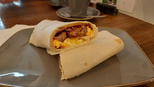 The service was very nice, the owner of the place who was our primary server was especially lovely and very invested in us aa visitors. I bet they have a whole bunch of loyal regulars too. I had an all-day breakfast wrap, followed by fruit...