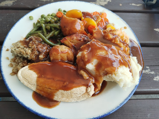 Went up to the carvery and explained we were having the plant-based chicken, openly and publicly mocked by the man behind the carvery about being meat-free, who then also proceeded to refer to the option as āwot, that weird fungussy substanceā laughing away. He let the two of us fill our plates with veg and acted like heād gone to the back to order our non-meat option. We stood around for ten minutes whilst the rest of our plate of food went cold. Only for some other man to come out of the back and say we couldnāt have it and the woman at the till should have given us a ticket. This went on for a bit with both men acting in an accusatory manner like we were in the wrong for not having something the woman at the till should apparently have got us. I said three times finally that as I didnāt work there I didnāt know what they were talking about. After clarifying that the āMeat-free carveryā actually consisted of just a plate of veg I said that wasnāt made clear from the menu and in that case we would leave it as that was really poor considering the meal was only very slightly cheaper than the main carvery meal, for basically a spoonful of peas and carrots.