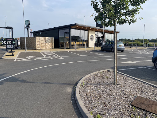 Staff are friendly and dogs are allowed. There is a decent vegan menu but there wasn't much in stock when we went (Saturday lunchtime), the choice was salad, which was delicious. The latte was very bland, I could have asked them to leave the coffee out and I wouldn't have noticed. It is a drive through on a partially built estate which partly explains the complete lack of atmosphere but the very low seating and very 1970s diner feel isn't very relaxing. Was disappointed to be given plastic cutlery even tho I was eating in, not the fault of the staff, it was what the franchise supplied; given all the adverse publicity about plastic pollution I think they've missed a trick there. It was our first time going to Starbucks, given that there is strong competition in the town from Cafe Nero, Costa and independents, I'm not sure...