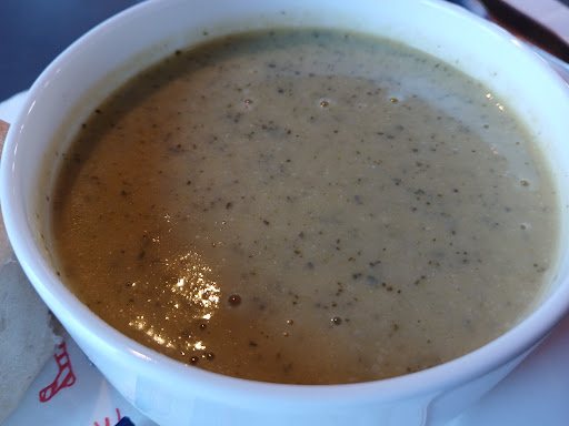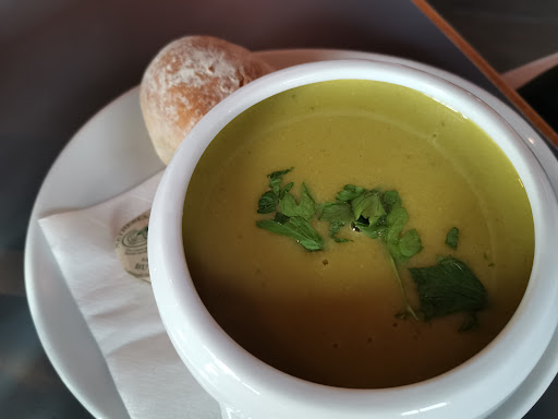 Had a very disappointing visit today. We arrived around 11.30 with the cafè moderately busy but still lots of available tables yet we were left waiting by the entrance without any of the staff acknowledging us. Once seated we weren't given any menus, just told to look at the specials boards on the wall. We ordered 2 coffees, the special "Hungarian mushroom" soup, freshly baked focaccia and some cake. The coffees were fine. The soup wasn't bad but I couldn't tell you what made it Hungarian and the bread served with it was unappealing. Neither of us felt the homemade focaccia was any good. Considering it cost £4.95 I wouldn't say it was value for money or particularly 'focaccia' like, at least not as good as focaccia I have eaten in the past. The cake I had was tasty and I did very much enjoy it.