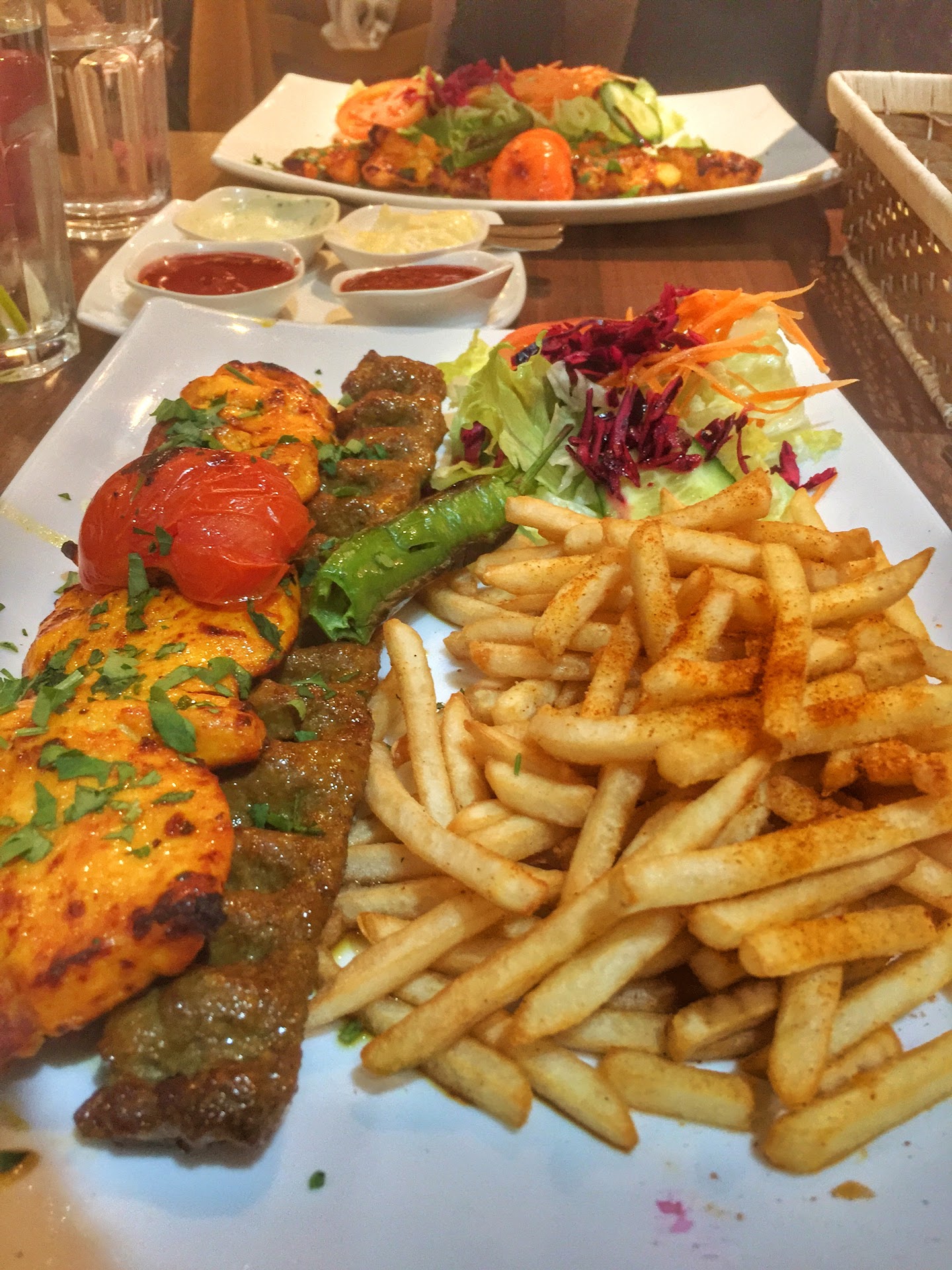 The menu is extremely diverse, with plenty of starters, skewers, other main dishes, plenty of drinks and some desserts. I had the absolutely fantastic lamb shank with saffron basmati rice. It was absolutely delicious and did not take long to prepare. I thoroughly enjoyed it. It was complemented with a yogurt drink called Doogh (better known as ayran) and we also ordered a side of chips. This alone filled us up fully. We have no complaints about the food.
