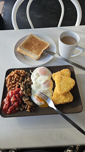 The café is run by the loveliest ladies, and everything is homemade with genuine care and passion. You can really taste the love that goes into the food. I had the vegetarian breakfast, and it was simply outstanding – three perfectly crispy yet soft hash browns, eggs cooked to perfection, tasty mushrooms, tomatoes, beans and golden toast that was crunchy but not burnt. Every single thing was spot on – beautifully cooked, no grease, no burnt bits, just pure deliciousness.