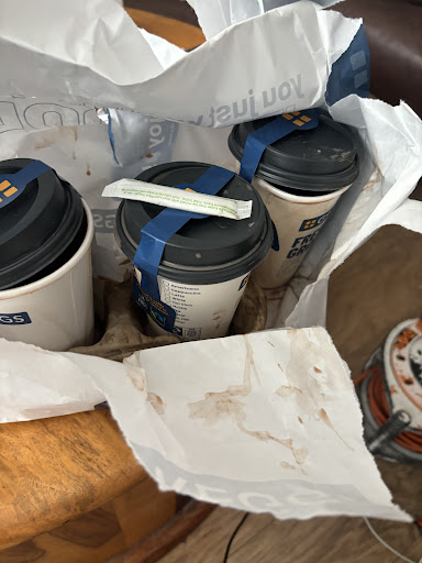 Got myself a breakfast and drink plus a box of yumyums for later on. As a picked up the box the bottom dropped out and fell on the floor.