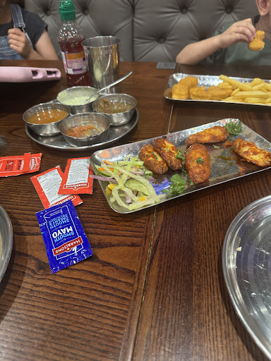 The wings weren’t great x6 pieces and the taste wasn’t fantastic I didn’t yearn for more. The mains of Charsi Chickdn which we waited 40 mins for was bland at best. The staff asked how the food was and were surprised that I found it to be substandard at best. They took the food back to liven it up with minimal success. It’s a massive portion for £24 but we didn’t eat 3/4 of the dish as it’s not very appealing. The amount of oil in it was shocking. To pay by card you need to go over to the counter which isn’t convenient but not the end of the world. I checked my bill and I had not been given an additional fruitshoot with my second portion of nuggets which was rectified with no issue. I explained to the manager the food was bland and he apologised. I explained we only visited as the reviews were good but the experience we had wasn’t great. I also brought up the mayo and tomato ketchup being served in sachets and his response was that clientele don’t ask for them and pots don’t match there aesthetics for the establishment. (His words were that pots for sauces don’t look nice) I also explained that the toilets were not clean and his response was that the staff had been cleaning every 20 mins. This was complete nonsense as I used the restroom twice to wash my hands over 40 mins and the facilities had not been cleaned. The manager then confided that he had a large group of 16 people in. Who wrecked the cleanliness by splashing water every where whilst performing ablutions. I pointed out that it’s a health and safety issue not to mention disgusting. He simply said it’s beyond his control.