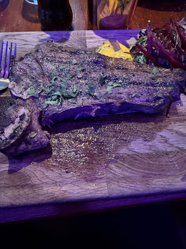 I had a steak I asked for medium rare, it arrived well done and very dry, I asked the waiter if it came with chips and he said no so I ordered chips, but it didn’t come with chips, I couldn’t eat the steak as I don’t like it dry and well done, but I also didn’t have any cutlery, and I asked 3 staff members for cutlery they didn’t listen or ignored me, after about 10 mins I went up to a person and asked for cutlery and he informed me kitchen hadn’t sent any cutlery I told him I’m eating steak that’s served on a wooden board it’s already cold, he came back a few mins later with a fork, and he made me think he was doing me a favour, when he gave it, the steak cold and dry by now wasn’t appetising, I tried to eat it but I couldn’t £35 for the steak and £3.50 for the chips that I didn’t need! I forgotten what the others ate, but the waiter sold us 4 portions of chips that we didn’t need, as the other meals also came with chips,