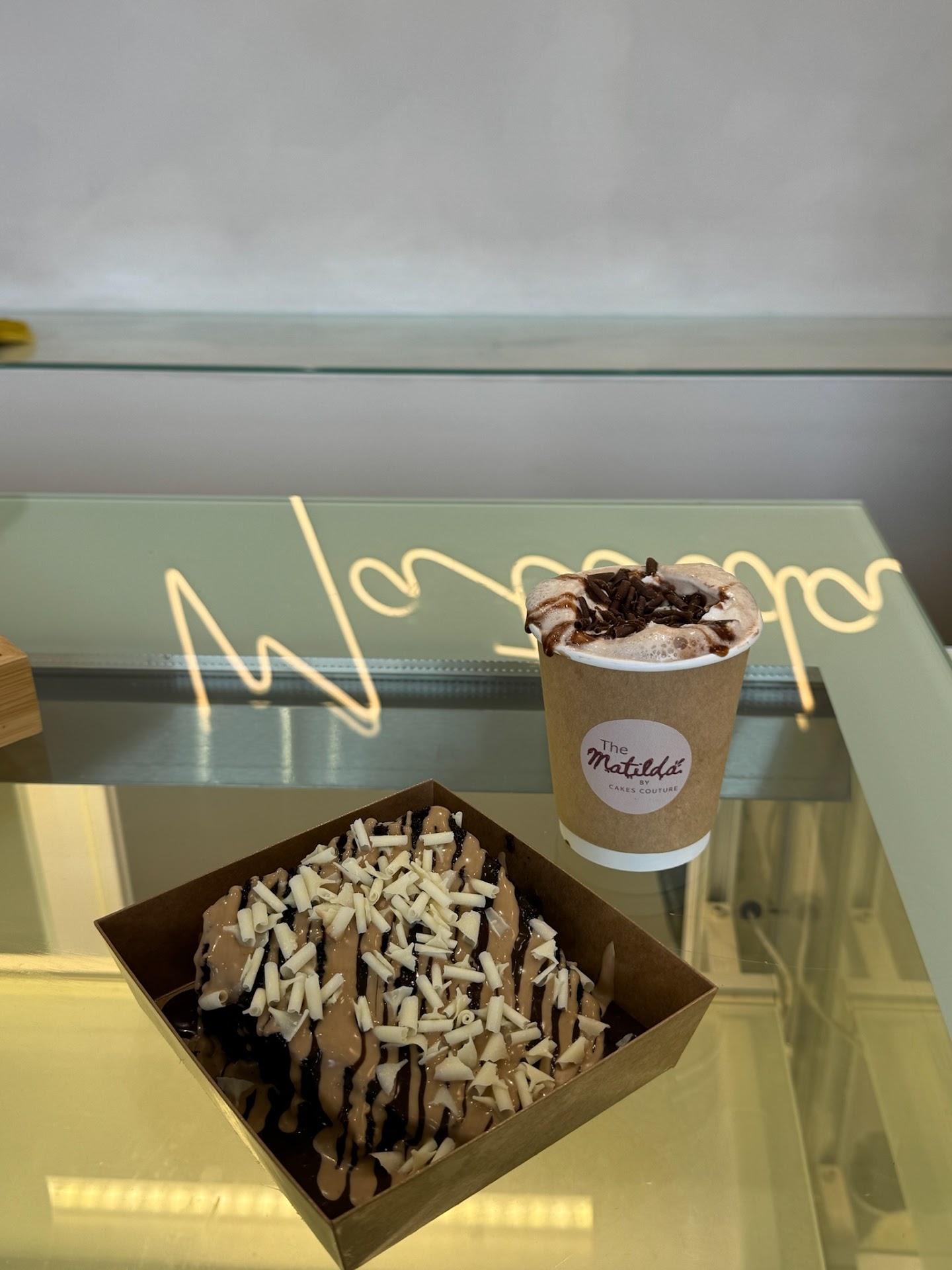 Kunafe brownie- the kunafe itself is quite crunchy and nice, but the brownie is not freshly baked and shop bought, then the kunafe is just dumped on top. Don't expect any homemade treats here. Except maybe the matilda cake, which was sadly absent so unable to give an opinion. Hot chocolate, is just the same quality as you would get in a hospital vending machine. 😬 and I suppose that is the theme as everything is in disposables.