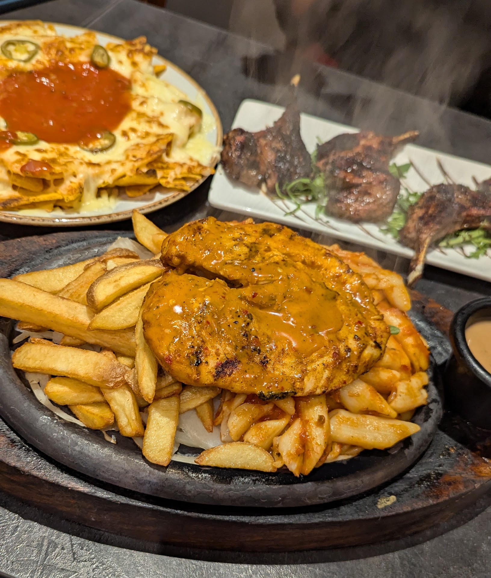 Read moreWe went today (a Saturday) it was very busy and we got seated quickly. The waitress attentively took our order a few minutes later and then we began to wait for the food to come. It took close to 30 mins before our food came and when it did our mocktails didn't arrive until 5 minutes later. The strawberry daiquiri was in an overflowing glass and melted onto the table. Then it comes to the food we got the nachos, spicy lamb chops and the chicken fillet sizzler with chips + pasta.