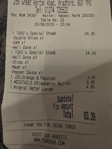 In summary, my visit to Toros Steakhouse in Bradford was a true gastronomic delight. From the impeccable service to the mouthwatering steaks and the inviting ambiance, every aspect of the restaurant exceeded my expectations. If you're looking for a memorable dining experience that combines exceptional food, impeccable service, and an inviting atmosphere, Toros Steakhouse is the place to be. I wholeheartedly recommend this establishment and can't wait to return for another extraordinary...