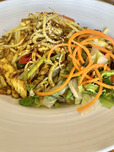 For our meal, we chose vegan spring rolls as starters and Yaki Udon and Teriyaki Fried Rice for the mains. For our 4-year-old, we ordered sweet and sour chicken with rice and a fresh salad. The portions were generous; my partner mentioned she would have been satisfied with just the main course, although the spring rolls were among the best we've tried. Overall, we were pleased with the meal, and all three dishes justified their price.