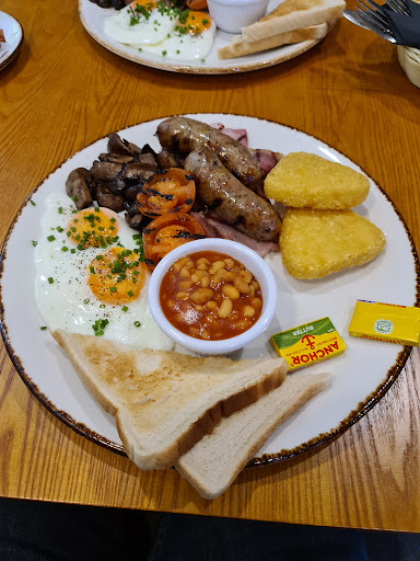 Very disapointing ! Today 5th August 2025 around 6.00pm attended the Baltic Amber Restaurant and Bar , My wife and I on entering the building noticed a 2025 Busness award on a table close to a seating lecturn in the foyer , we were met by a young waitress who was pleasant and polite and directed us to a 2 seater table close to a window overlooking the beer garden, the table was clean and tidy we both decided to approach the bar where we were served a pint of Pale Ale and an apple cider we both returned to our table a solid blond lady took our order from the Menu, mine was spagetti with meat bolognese sauce topped with parmesan cheese. The menu included T- Bone Steak , Sirloin Steak,Ribeye Fillet Steak, Rump Steak, My wife ordered a Ribeye Fillet Steak with Peppercorn sauce/ Gravy, potatos and salad were included. When asked how she wanted her steak cooked my wife replyed for it to be "well done" which she has regularly. An order for a garlic & cheese pizza base was added
