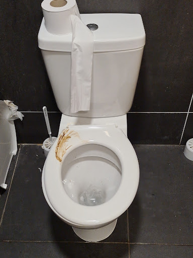 You remember the scene in "Saw" where they wake up, handcuffed to a manky, abandoned old toilet and have to choose whether to cut their arm off or die? That's probably the level of cleanliness there is in these toilets.