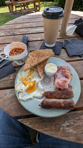 I stopped here for lunch... an all day breakfast... yes please! It was lovely and as I didn't have the kids with me I decided to pair it with chocolate Milkshake (no sharing issues this time!) Food was good, quite a lot of beans in the cup, but I liked it - and being presented in the cup was a bit different! Only improvement I would suggest is an extra slice of toast with the larger breakfast as the one slice wasn't quite enough! Service was OK and the atmosphere OK as well - I guess if it had been warmer I might have sat outside and admired the garden... perhaps...