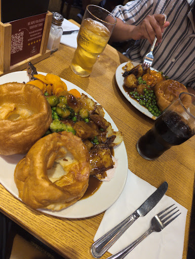Read moreWell to be blunt and frankly honest if this was a school report it would simply read 'this restaurant branch is capable of better but needs to put the effort in'. We ate here on New Year's eve ad a family and were very much unimpressed. Don't get me wrong not all aspects of the meal were bad however as an overall experience it was far from pleasant. To kick off we was the last table to be seated at 7.30pm and within minutes were queuing up to get our dinner. I've been led to believe if I'm the very 1st person or the very last person to grace the carvery I will be greeted with the exact same choice and quality of food. This was very sadly not the case. To start their 'famous Yorkshire puddings' were dried husks ready to crumble to dust. There was no gammon and the pork was literally the scrap end left. So this left dry turkey of fat riddled beef. Myself liked the beef that was, full of flavours and not too chewy so wad in fact in my honest opinion the best part of the meal. All the vegetables and potatoes were very much undercooked and not pleasant to say the least. The gravy posts were next to each other and not labelled so had I wished for the vegetarian option anyone's guess was as good as the next persons.