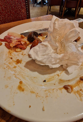 My children who of like gammon had to opt for the overcooked chipolatas which despite their love of them were left eneaten. Also they claimed they were closing at 9pm, just after we sat down they fed the staff then cleared away everything from the carvery so had we wished to get anymore items we had lucked out as it was all gone. There was more staff than customers who seemed to loom and even our waitress asked and cleared away a couple of our plates whilst the others were still eating. This made us very uncomfortable and felt hurried to finish and leave. We'd planned of having puddings all round but felt rushed to pay and leave so they could leave themselves. Some staff had left during our meal quite overtly making it clear to us they were going. There was whom I assumed was a manager on site, short guy with a shirt on who didn't even give us the time of day during on on leaving .