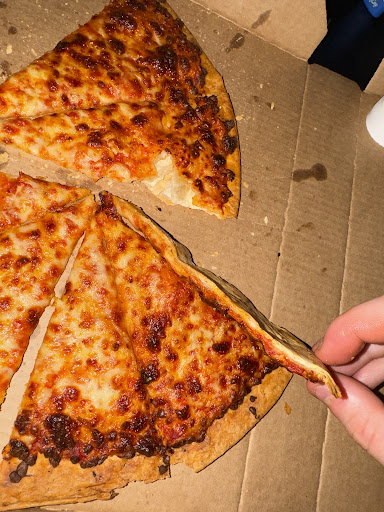 I have no idea why a part of this pizza tastes like pen ink but I let the bite of pizza fall out of my mouth and back into the box and disposed of the rest, highly...