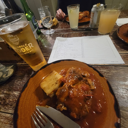 Read moreFantastic service and food We stayed at the Pig Shed and ate at the George and Dragon, The menu was small but perfect as pub food. Great starters we shared the calamari and it was exceptional, especially the smoked paprika dusting and the dip. For main course my man had one of the best steaks ever, rare juicy and from a local butcher. The price looked expensive at first glance but the price was wholly justified by the quality and deliciousness. I had the most wonderful fish and chips, a fair sized fish, not overwhelming, thank good ness and the lightest crispest batter I have ever tasted. Lovely peas and great double helpings of tartar sauce completed my very satisfying experience. The negative…no wine list, two choices of white and red wine, we don’t “ do new world wines” so only one wile of each colour, the red was a merlot great but heavy quaffing the white…cold but not my fav. One brandy with excellent espresso coffee. We both had a beer when we checked in and the wherry was well kept I had a half pint of something ?.. which was delicious.