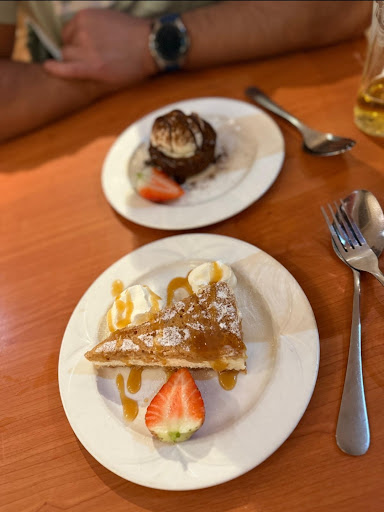 This is where it gets weird: The waiter spilled cola and broke the glass all over the table and largely soaked the entirety onto my dress! Jumped out of my seat with shock. However, it was barely acknowledged by him. Wasn't given anything to wipe or clean with, he wasn't apologetic. Customers around us were shocked and a kind customer gave me her cloth napkin to clean up with.