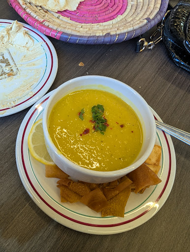 Also loved the complimentary lentil soup, a generous touch, and genuinely tasty (picture). Oh, and the platter comes with hummus too (which I love). Absolutely delicious!