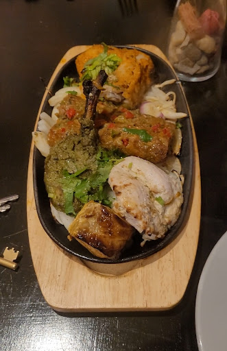 Let's talk about the food – an exquisite journey for the palate. For starters, we indulged in the Meat Sizzler, a tantalizing array of chicken, lamb chops, tuna, and kebabs. Each bite was a burst of flavor, with the chicken particularly standing out, complemented perfectly by the mint sauce. And the drinks? Ah, the Mango Lassi, a creamy concoction that danced on the taste buds, and the Desi Punch, with its refreshing kick, left us wanting more.